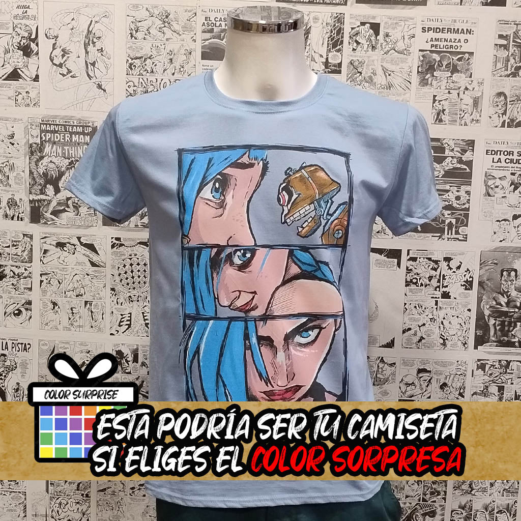 Consigue la camiseta original de la serie Arcane con un diseño exclusivo de Jinx, la icónica y caótica protagonista de League of Legends. Esta prenda captura la esencia de la impresionante rebelión que define a Jinx, convirtiéndose en un imprescindible para los verdaderos fans de los videojuegos y la aclamada serie. Destaca con estilo y muestra tu pasión por este universo con una camiseta llena de carácter y autenticidad. ¡Sé parte de la revolución con esta pieza única y original!