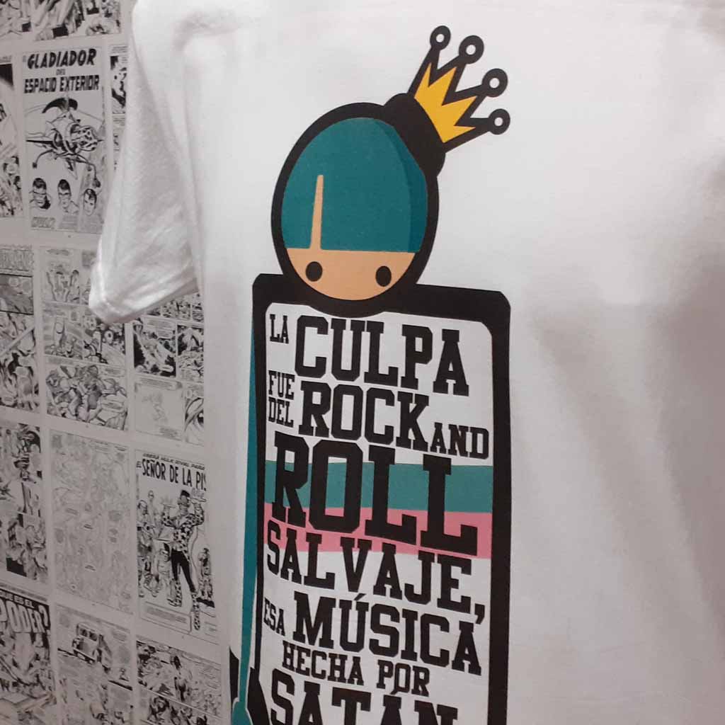 Esta camiseta es un tributo a Los Planetas y a "El rey de España", uno de los temas de su álbum "Las canciones del agua". Eso sí, la culpa no fue del Rock'n Roll salvaje :-).