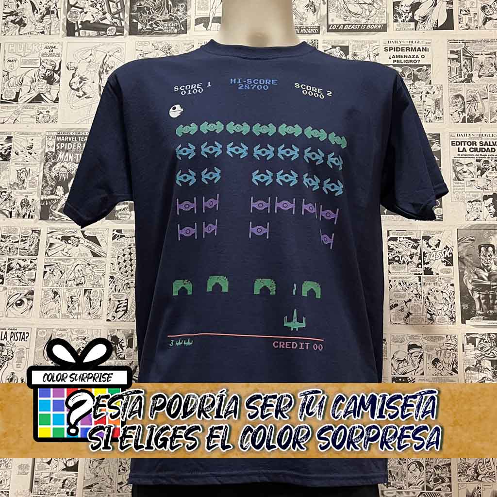 ¡Transporta tu pasión por los videojuegos clásicos al universo de Star Wars con nuestra prenda única inspirada en el icónico juego de arcade, Space Invaders! Nuestro diseño original captura la esencia de los marcianitos y te sumerge en una experiencia llena de nostalgia.