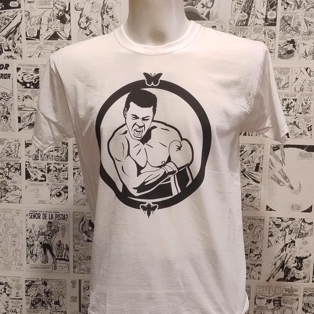 Camiseta homenaje al más grande de todos los tiempos, al GOAT (Greatest of all time), al boxeador que flotaba como una mariposa y picaba como una abeja: float like a butterfly sting like a bee. Muhammad Ali el rey del boxeo.